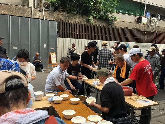 NPO法人炊き出し志絆会は大阪の釜ヶ崎で路上生活をしているホームレスの方や失業者の方に対して、カレーライスの炊き出しや寄付物品の配布を行っているNPO法人です。(NPO法人炊き出し志絆会のサイトより引用)
