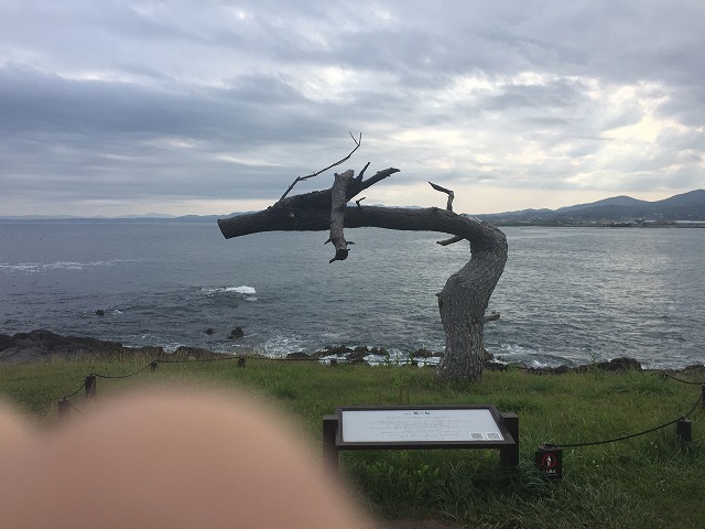 岩井崎では龍の松を見て、勢いの強い波が尖った岩に当たり水がとても跳ねていました。