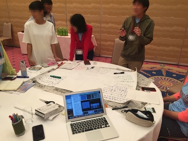 その後、研修で学んだことを共有するためのグループディスカッションで、研修最終日にある報告会で使う模造紙を作りました。